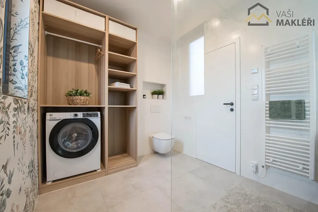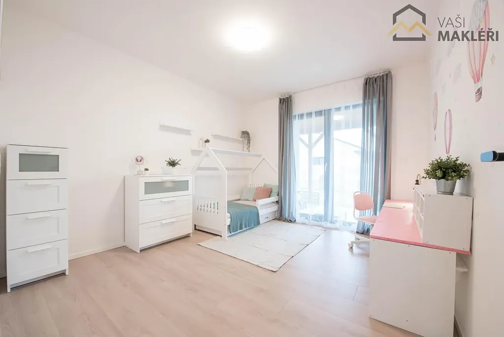 Oblíbenému dispozičnímu řešení 4+kk dominuje prostorný obývací pokoj s francouzskými okny, které propojuje interiér nemovitosti s udržovanou zahradou a také umožňuje vstup na zastřešenou terasu, která je v letních měsících dalším obytným prostorem. Na míru zhotovená kuchyňská linka je plně vybavena vestavěnými spotřebiči a chytře odděluje kuchyňský kout od zbylé části obývacího pokoje. Nemovitost dále disponuje třemi ložnicemi s rozdílnými výměrami. Prostorná koupelna je vybavena sprchovým koutem, dvěma umyvadly a toaletou. Propojovací chodba, zádveří a sklad poskytují dostatek místa pro úložné prostory (pro skladování sezónních věcí lze využít i pochozí prostor na půdě) a druhá toaleta je samozřejmostí. Součástí domu je i technická místnost se samostatným vstupem. V rozložení jednotlivých místností se nejlépe zorientujete z půdorysu, který je součástí inzerátu nebo si dům projděte virtuálně, z pohodlí vašeho domova.