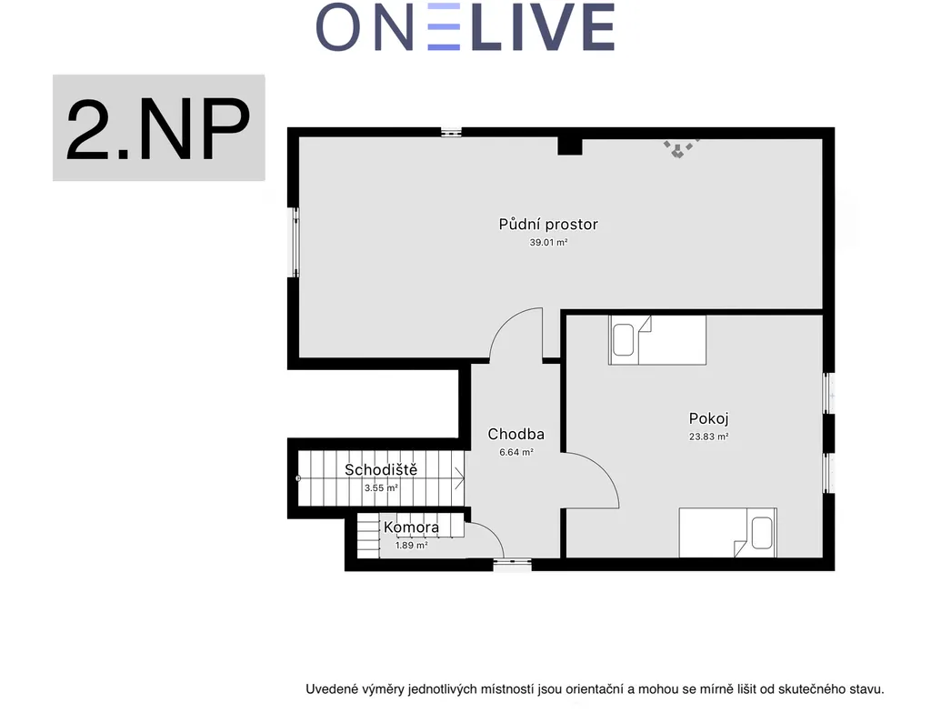- cca 39 m² v patře