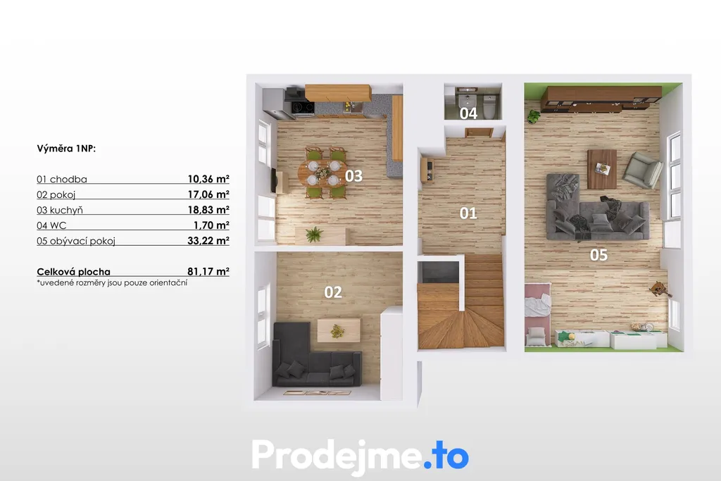 Prostor pro rodinu, soukromí pro každého a možnost bydlení bez nutnosti větších úprav.