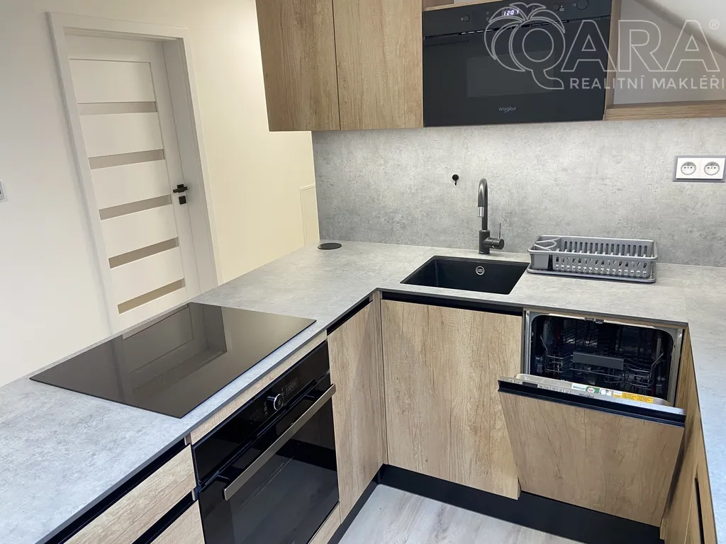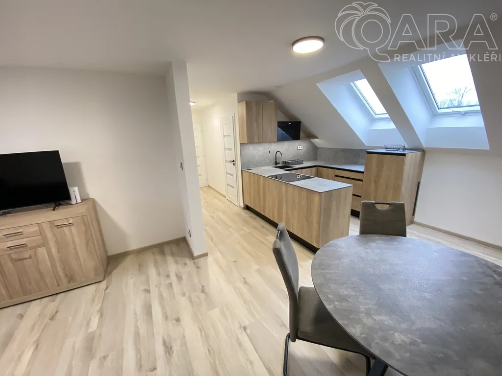 Exkluzivně nabízíme pronájem zařízeného bytu 2+kk v Ivanovicích na Hané. Byt se nachází ve 2. nadzemním podlaží v novostavbě bytového domu na ulici Horní Valy. Podkrovní byt s klimatizací je o velikosti 51,63 m2. Kuchyně je vybavená indukční varnou deskou, elektrickou troubou, myčkou, ledničkou i mikrovlnkou. V jídelní části najdete kulatý stůl se židlemi. V obývací části na vás čeká pohodlná sedací souprava se skříňkou a televizí. Ložnice je zařízena manželskou postelí, šatní skříní se zrcadlem a nočními stolky. Koupelna je vybavena sprchovým koutem a nachází se v ní i pračka se sušičkou. Měsíční nájemné je 19.000,- Kč + 3.500,- Kč platba za energie. Internet a televize od O2 je v ceně nájmu. Majitel požaduje jistotu (kauci) ve výši 22.500,- Kč. Provize RK je 22.500,- Kč. Byt je vhodný pro 2 osoby.