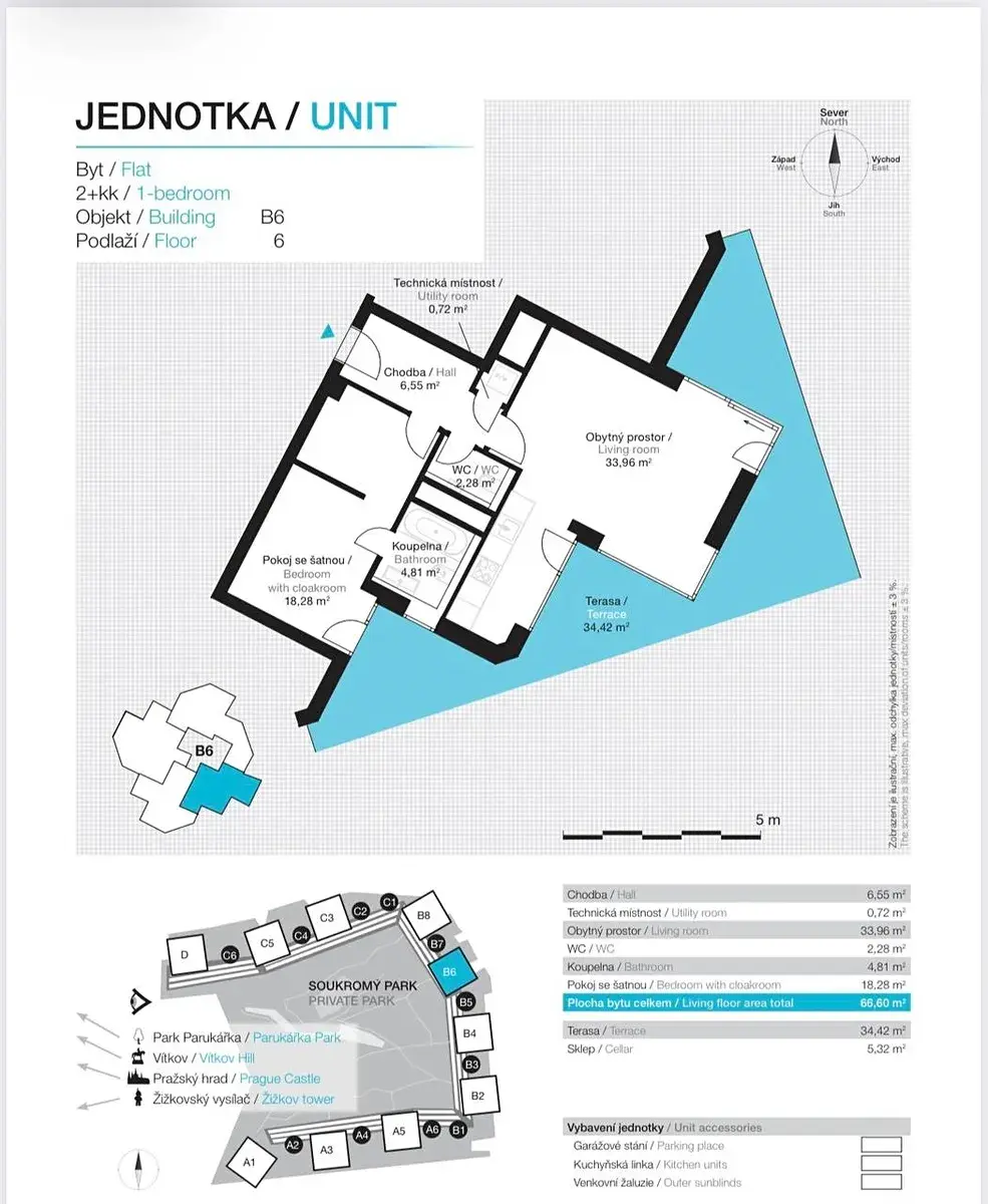 Rádi Vám představíme exkluzivní nabídku: Pronájem kompletně zařízeného, slunného bytu 2+kk s plochou 67 m², venkovní terasou 34 m²,sklepem 5 m², parkovacím místem v prestižní rezidenci Central Park Praha v Žižkově.