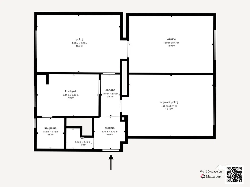 Představu o prostorovém uspořádání bytu získáte z 3D virtuální prohlídky a videoprohlídky zde v inzerci.