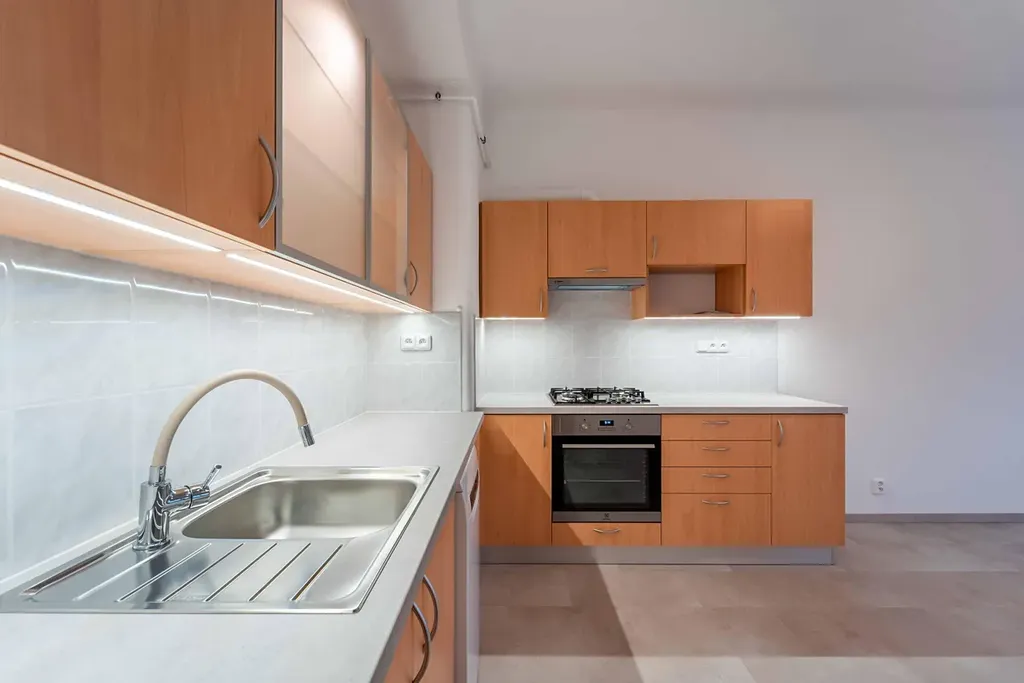 Plovoucí podlahy v pokojích, dlažba v koupelně. V kuchyni nechybí myčka a trouba. Vytápění i ohřev vody jsou zajištěny vlastním plynovým kotlem.