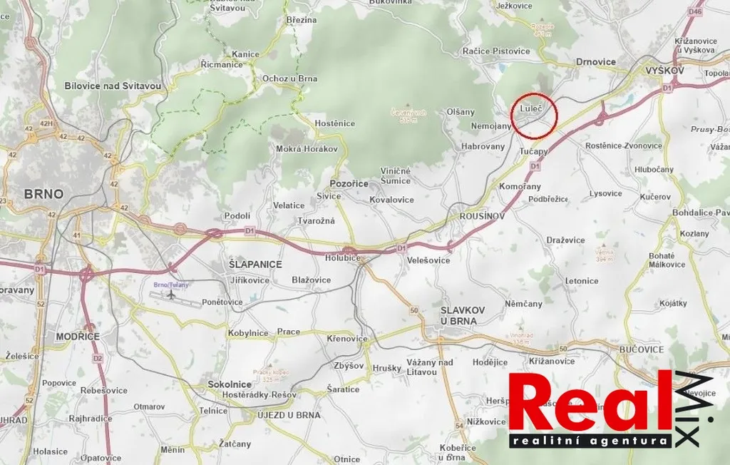 Dostupnost do Brna cca 25 minut autem, Vyškov 8 minut.