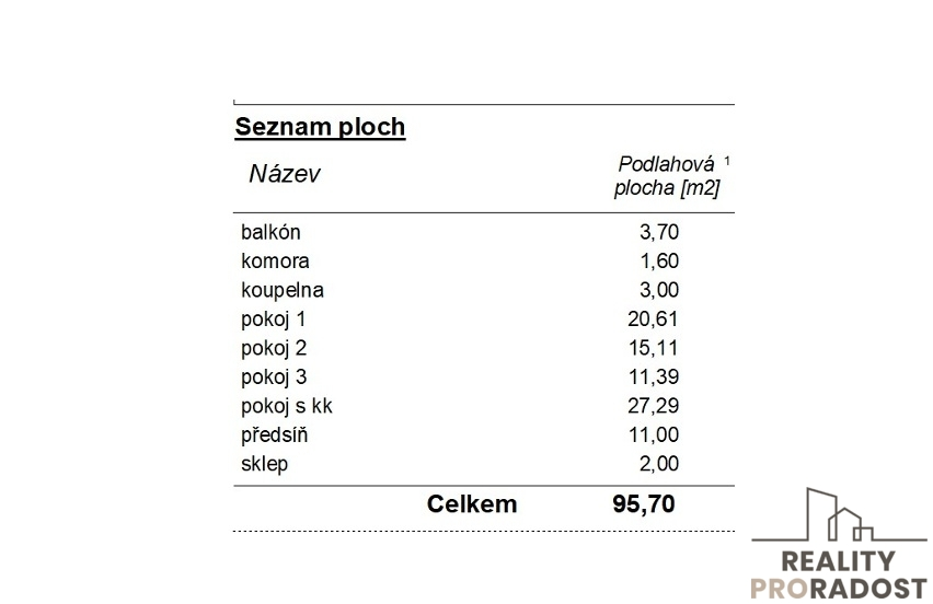 Byt je o dispozici 4+KK a má celkovou výměru 95,70 m2 se 2 balkóny z každé strany jeden.