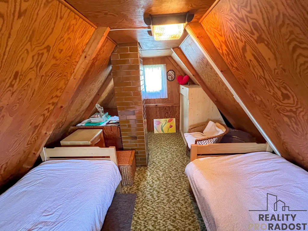 ➥ Dispozice: 2+1 (obývací pokoj, podkrovní ložnice, technické zázemí v suterénu).