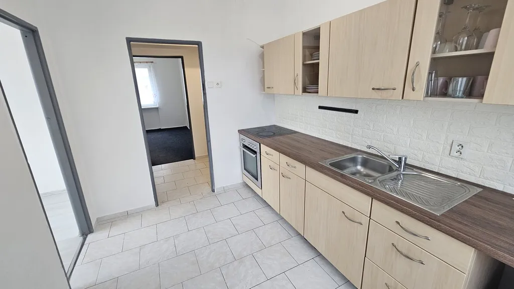Nabízíme k prodeji družstevní byt v ulici Mikulášovická. Byt 3+1 se nachází v 1. patře panelového domu bez výtahu. Dům je nově zateplený, pravidelně udržovaný a velmi čistý, což zajišťuje příjemné a klidné bydlení. Byt je vyklizený a připravený k okamžitému předání novému majiteli. Po vstupu do bytu se po levé straně nachází koupelna vybavená vanou, toaletou, umyvadlem a bojlerem na ohřev vody. Po pravé straně je první obytná místnost. Dále vlevo navazuje kuchyňský prostor s elektrickou troubou. Za kuchyní se nachází další pokoj, který je průchozí do obývacího pokoje s krbovými kamny, který vytvářejí příjemnou atmosféru a mohou sloužit také jako doplňkový zdroj vytápění. Velký Šenov nabízí klidné bydlení s dobrou dostupností do Děčína i směrem na Německo. V obci je k dispozici základní občanská vybavenost včetně školy, školky, obchodů a lékařské péče. Lokalita je vhodná jak pro vlastní bydlení, tak i jako zajímavá investiční příležitost díky stabilní poptávce po nájemním bydlení v této oblasti.