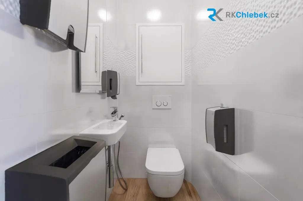 Koupelna nabízí sprchový kout i vanu, dvojité umyvadlo, toaletu, podlahové vytápění, vyhřívaný žebřík a zabudované rádio. Další samostatná toaleta je umístěna mimo koupelnu.