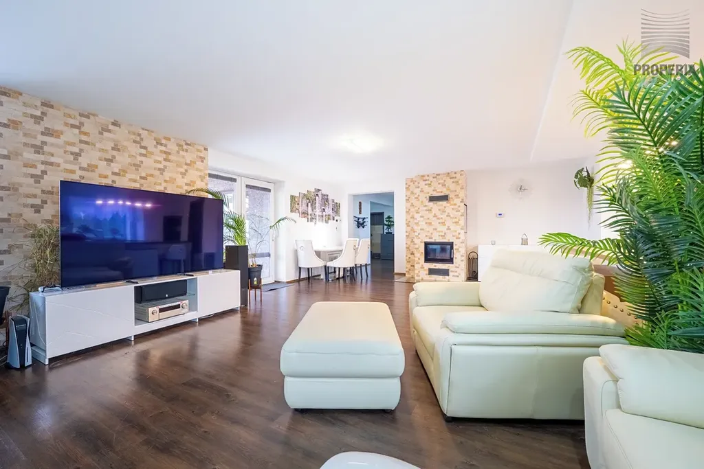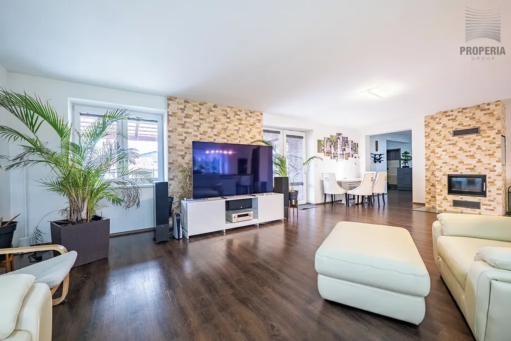Příjemnou atmosféru domova doplňuje krb v obývacím pokoji, ideální pro zimní večery.