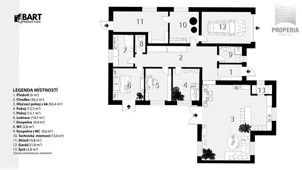 - 3 samostatné pokoje / ložnice