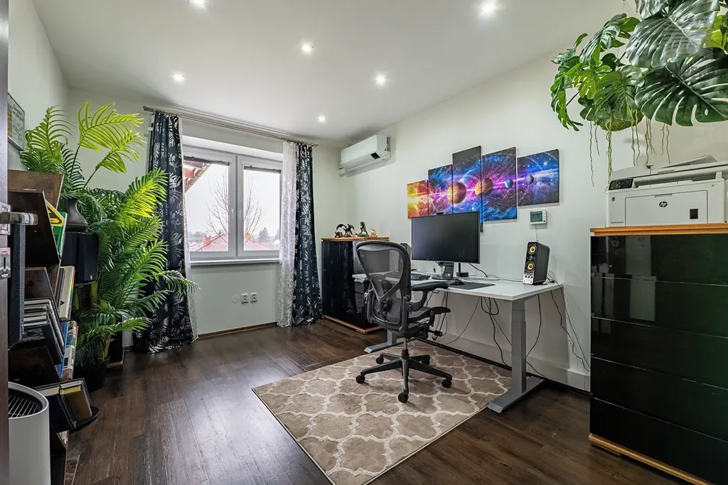 Dispozice je ideální pro rodinu s dětmi, ale také pro kombinaci bydlení a práce z domova.