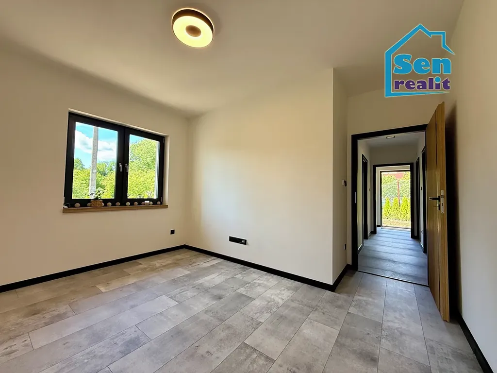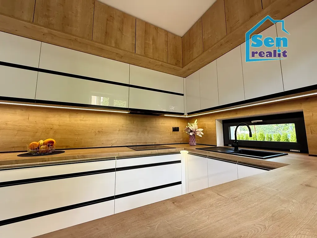 Plovoucí podlahy, stropní světla s možností volby intenzity jasu, dveře v dekoru dřeva, dřevěné parapety