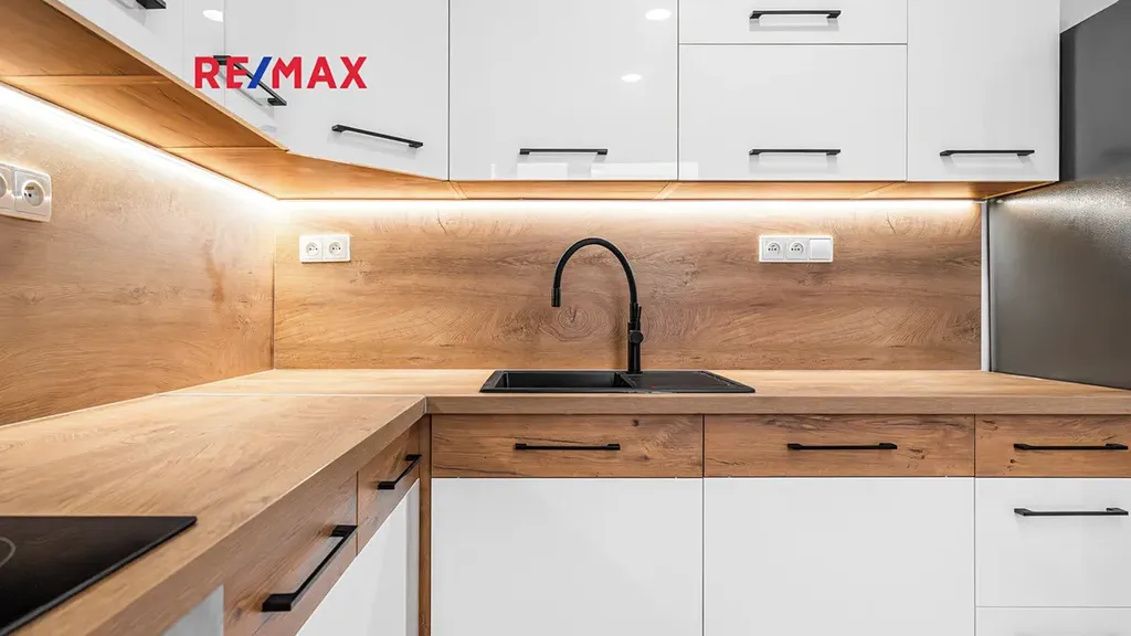 K dispozici je nová kuchyňská linka vybavená spotřebiči: myčkou na nádobí, troubou a lednicí, takže se můžete nastěhovat a fungovat okamžitě. V celém bytě byly položeny nové podlahy, které podtrhují celkově sjednocený vzhled. Koupelna je po rekonstrukci, vkusně zařízená a praktická pro každodenní provoz. Příjemným bonusem je také společná sušárna na patře, která rozšiřuje možnosti zázemí v domě.