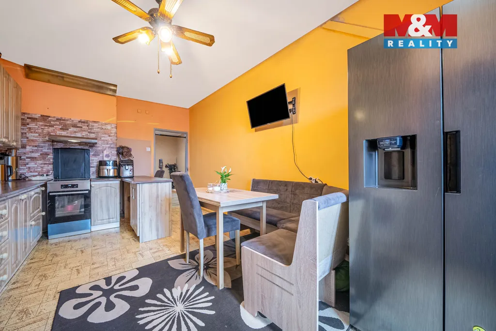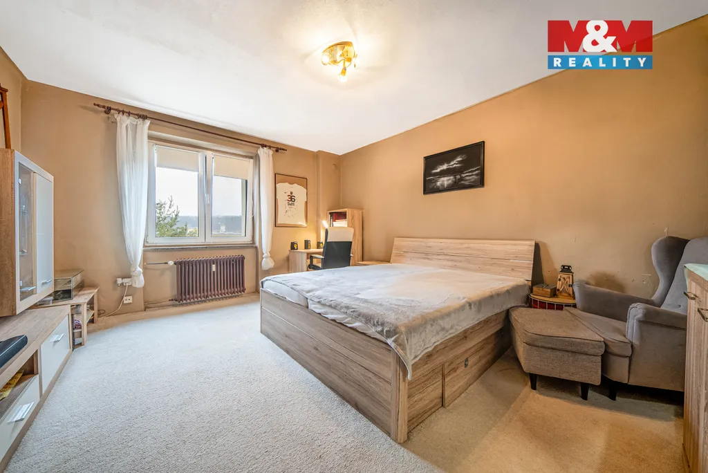 Dispozici tvoří dětský pokoj (16,5 m²), ložnice (19,9 m²), kuchyň s jídelním koutem (15,8 m²) a spíží (0,7 m²), prostorná chodba (18,3 m²), koupelna (3 m²), samostatné WC (1,3 m²) a komora (2,9 m²). K bytu náleží také sklep.