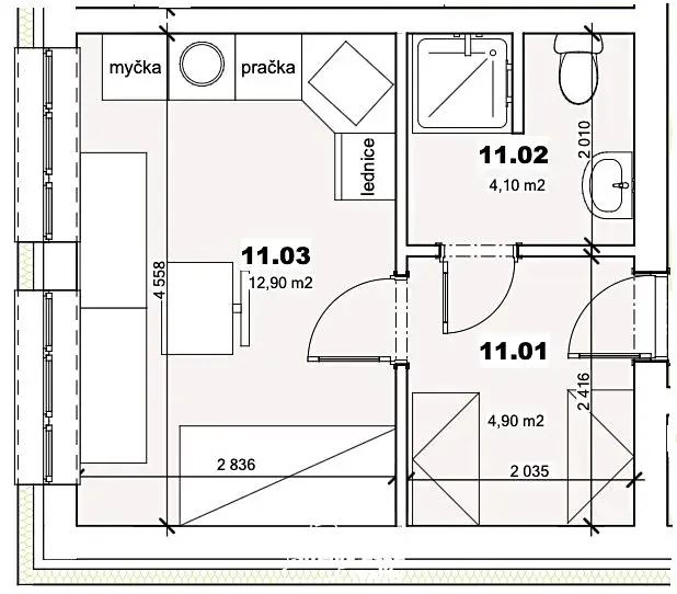 - součástí každé bytové jednotky je chodba, sociální zázemí, kuchyně vč. obytné místnosti (u některých dvě)