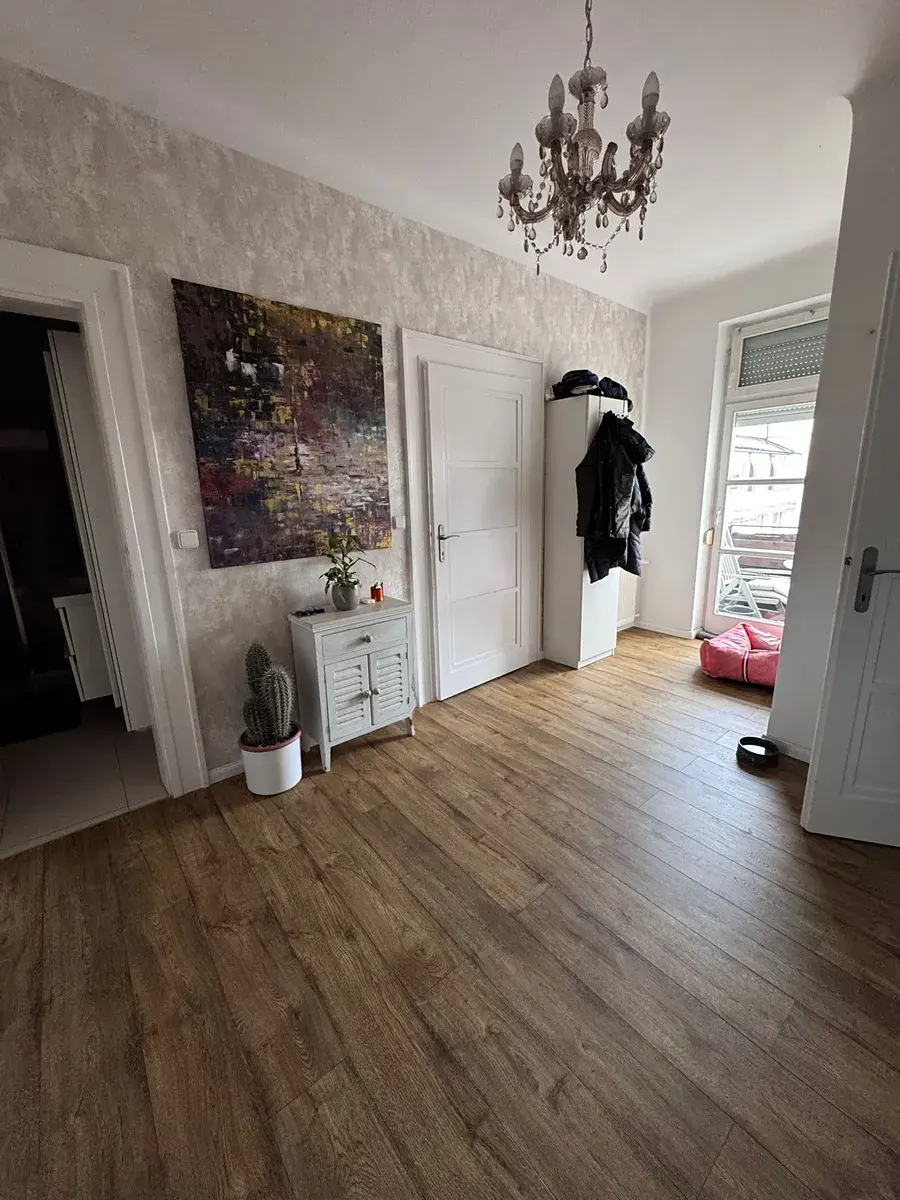 V bytě zůstává vestavěná skříň se zrcadlem, jinak se nabízí nezařízený. Lze se domluvit se současným nájemcem na převzetí části nábytku.