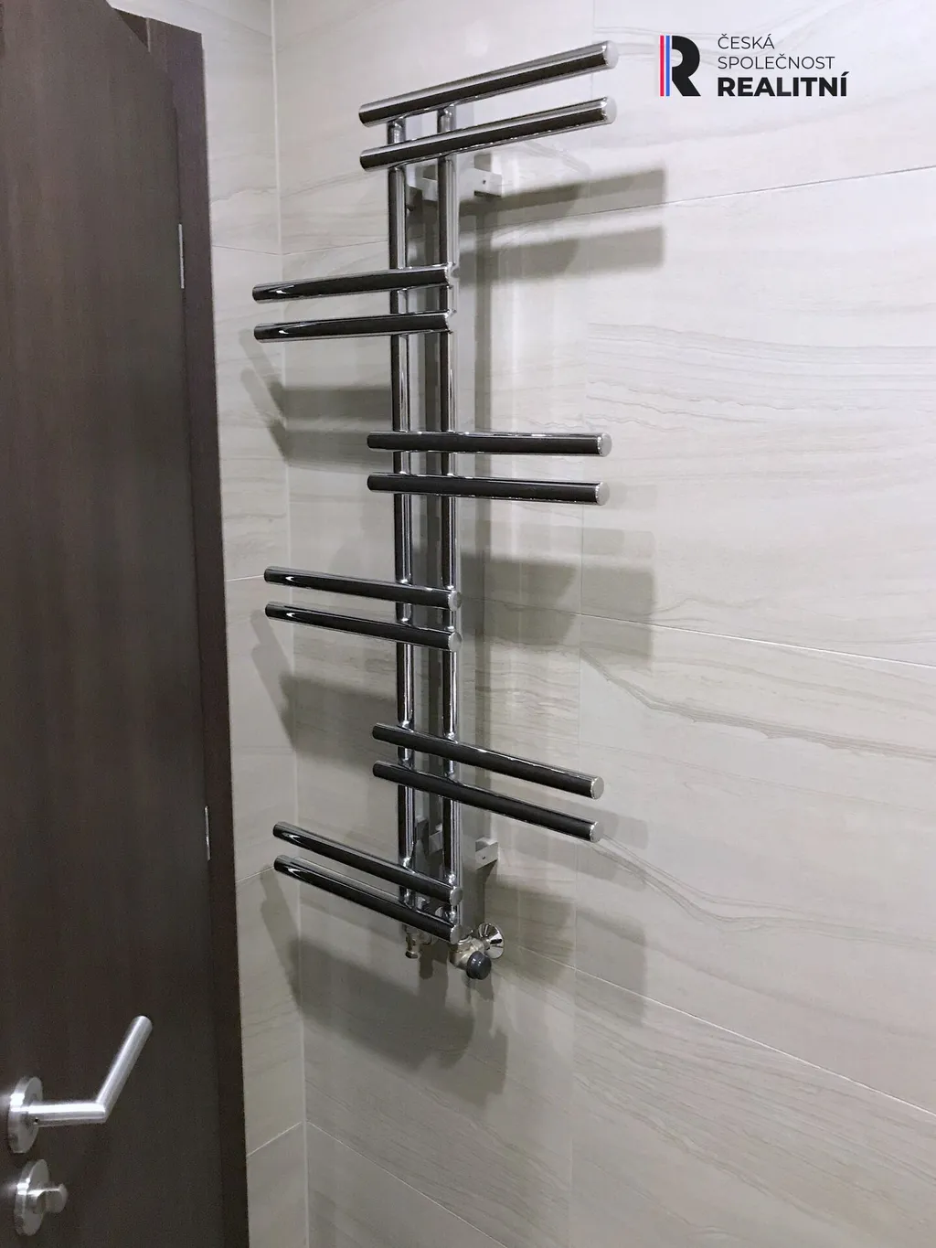 V bytě jsou francouzská okna, podlahové vytápění, koupelna /keramické velkoformátové obklady/ s masážní vanou a oddělené WC. Vstupní dveře jsou protipožární s obložkami.