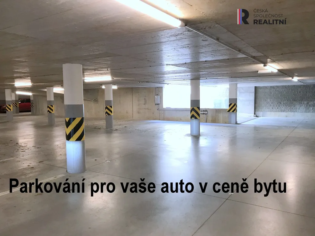 K bytu náleží vlastní garážové stání s kamerovým systémem, místnost pro kola a sklep nahrazuje v bytě komora.
