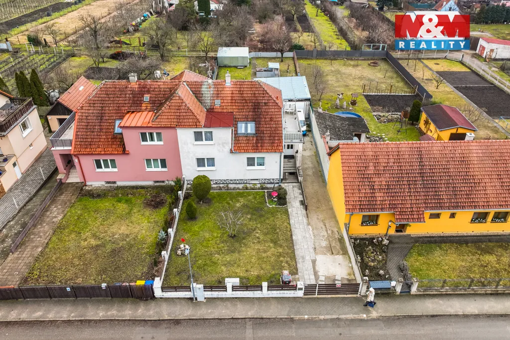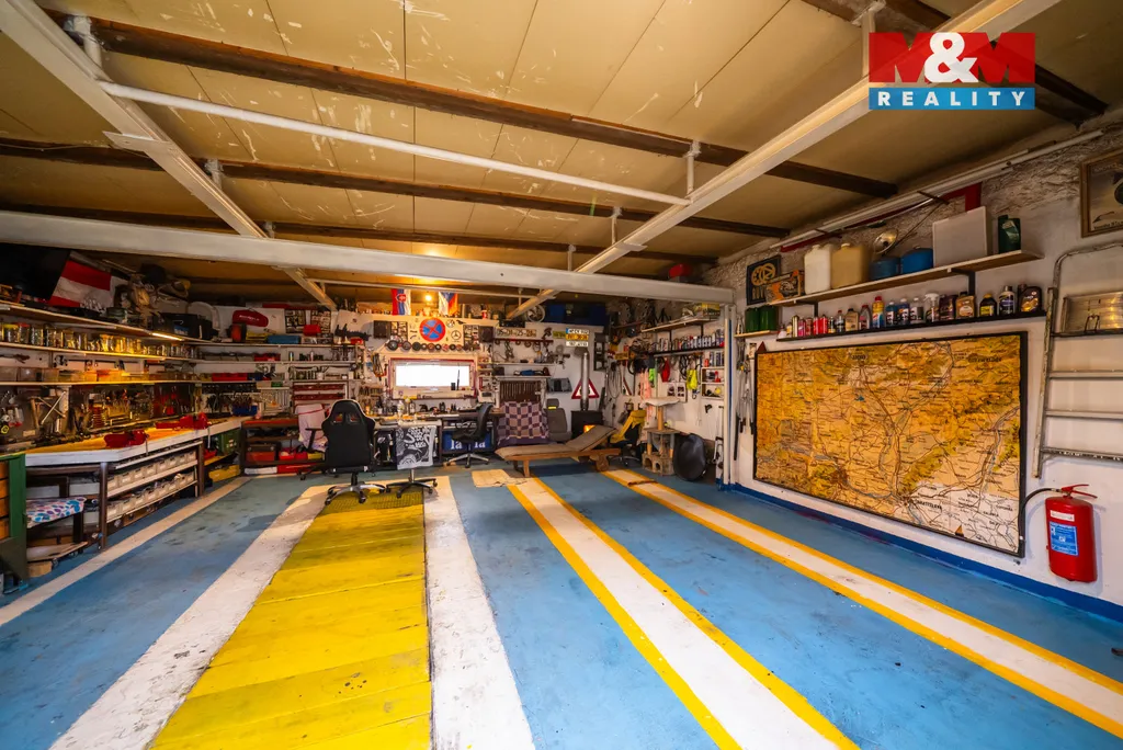 K nemovitosti náleží pět garáží, z nichž jedna samostatná je upravena jako dílna pro opravu automobilů včetně montážní jámy. Součástí je zahrada o výměře 574 m² se studnou využívanou k zavlažování a nerezová vířivka. Dům je vhodný pro vícegenerační bydlení i investiční využití, po úpravách také jako penzion nebo menší ubytovací zařízení.