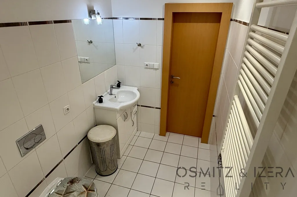 Nabízíme k pronájmu hezký byt 2+kk o celkové rozloze 52 m2 v klidné části Prahy 4 - Kamýk. Byt je v přízemí komplexu moderního bytového domu s uzavřeným vnitroblokem pouze pro rezidenty. Byt je částečně zařízený. Zahrada o přibližné ploše 40 m2 je orientovaná na jih a je přístupná přes francouzská okna z ložnice. Kuchyňská linka je vybavena vestavěnými spotřebiči (myčka, varná deska, elektrická trouba, digestoř a volně stojící kombinovaná lednice). Byt má velkoformátová francouzská dřevěná eurookna a bezpečnostní dveře. Ve velké koupelně je vana, WC a prostor na pračku a sušičku. V předsíní je vestavěná skříň. V bytě jsou plovoucí podlahy a dlažba.