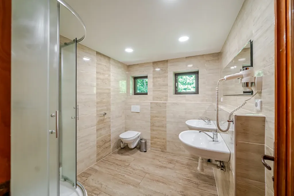 Jedná se o podsklepenou čtyřpodlažní zděnou budovu, která disponuje recepcí, zázemím restaurace včetně plně vybavené moderní kuchyně v nerezu se spotřebiči, jídelnou s obslužným barem, společenskou místností, vnitřním a venkovním posezením a ubytovací kapacitou 30 lůžek v deseti samostatných pokojích, z nichž některé mají terasu a samostatnou či sdílenou koupelnu.