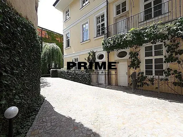 Klasický, 3 ložnicový, nezařízený byt se 2 koupelnami k pronájmu, 4+1, 170m2, s úzkým balkonem o výměře 17m2, situovaný ve 2. patře kompletně zrenovovaného historického domu s výtahem a malebným zeleným nádvořím s fontánou.