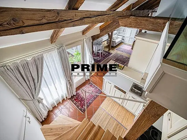 Nově zrekonstruovaný, zařízený, klimatizovaný, 2 ložnicový, mezonetový byt s 1 koupelnou k pronájmu, 3+kk, 127m2, s terasou, situovaný v 5. a 6. patře kompletně zrekonstruovaného cihlového domu s výtahem (výtah staví v mezipatrech). Budova se nachází v centru města, v klidné ulici, pouze 2 minuty chůze od zastávek tramvají, stanice metra na Náměstí Republiky a obchodního centra Palladium, 10 minut chůze na Václavské náměstí, blízko supermarketu Billa, obchodů, kaváren, barů a restaurací. Veškerá občanská vybavenost je v místě.