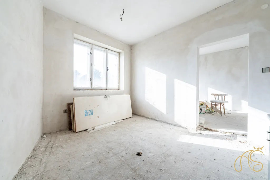 Pravé - severní křídlo domu je v započaté rekonstrukci - dvě místnosti a koupelna s toaletou, kde chybí jen osazení, obklady a dlažba.