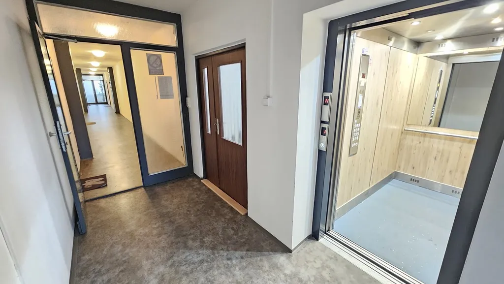 Panelový dům je vybaven dvěma výtahy, což zajišťuje komfortní bydlení. Společné prostory jsou udržované.