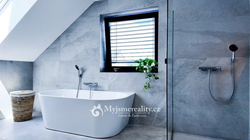 Dům je navržen s důrazem na nadčasovou architekturu, energetickou efektivitu a kvalitní materiály. Vytápění zajišťuje moderní tepelné čerpadlo země–voda v kombinaci s podlahovým vytápěním, které poskytuje příjemné teplo v celém domě. V letních měsících oceníte komfortní chlazení klimatizačními jednotkami ve všech obytných místnostech. Energetická náročnost budovy odpovídá úsporné třídě B.