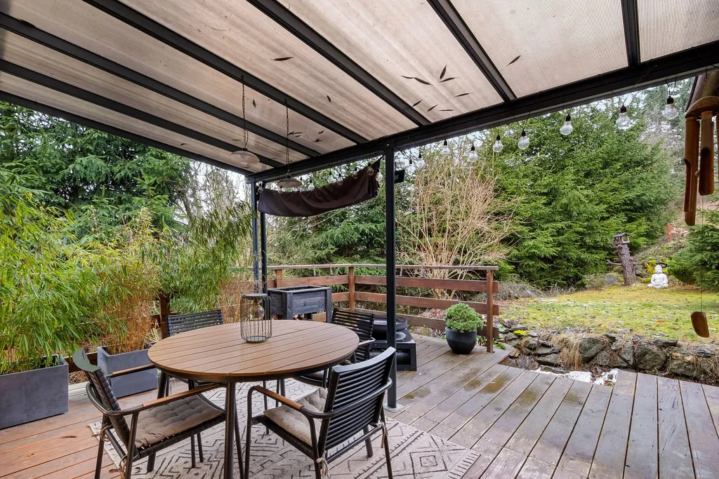 Na obytnou část domu plynule navazuje terasa, která je nově zastřešena hliníkovou konstrukcí a vytváří příjemné místo pro posezení. Dům je zasazen do jižně orientované zahrady, která je částečně okrasná, poskytuje dostatek soukromí a není jednotvárná. Zahrada poskytuje prostor pro nadzemní bazén, relaxační zónu i další využití podle vašich představ. V přední části pozemku u vjezdu je navíc místo, kde lze dobudovat přístřešek pro auto.