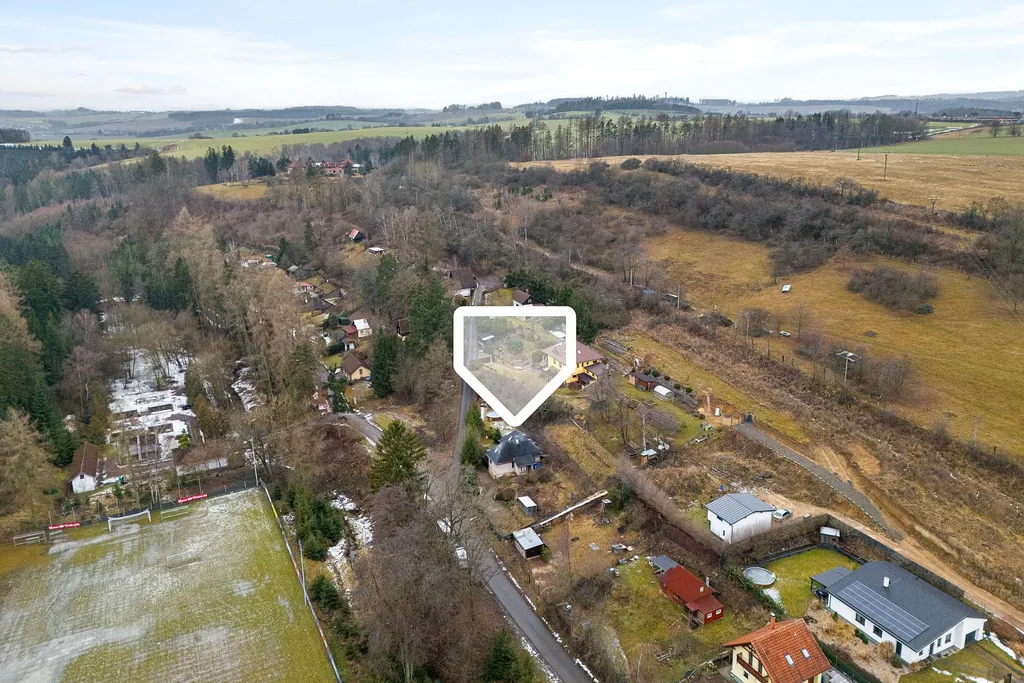 Dům se nachází v klidné ulici V Dolích, mimo hlavní komunikace a rušivé vlivy, přesto v pohodlné docházkové vzdálenosti od centra obce, obchodů, služeb i autobusového spojení. Velkým benefitem lokality je také přírodní koupaliště – biotop, které je od domu vzdálené přibližně tři minuty chůze. Místo působí velmi příjemně, klidně a má dobrou energii, která se zde přirozeně odráží v každodenním bydlení.