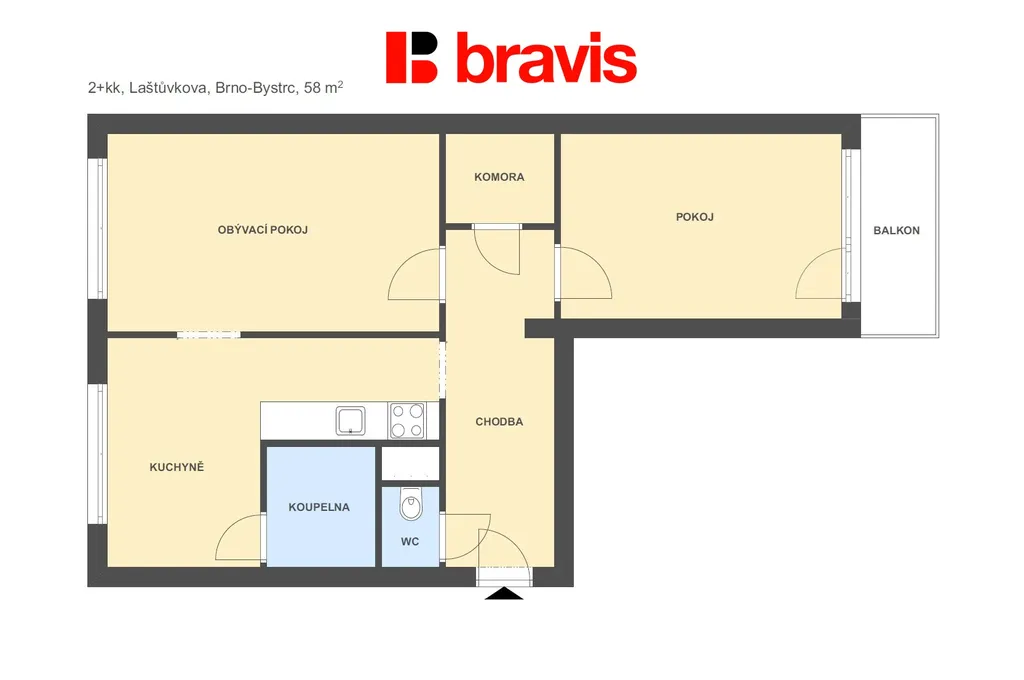 Ve výhradním zastoupení majitele nabízíme k pronájmu částečně zařízený byt o velikosti 2+kk na ulici Laštůvkova v Brně - Bystrci.