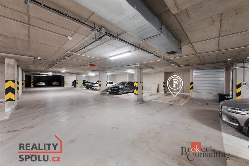 K bytu náleží lodžie (11 m²), jež je přístupná z obou hlavních místností, sklepní kóje (3 m²) a parkovací stání v podzemní garáži.