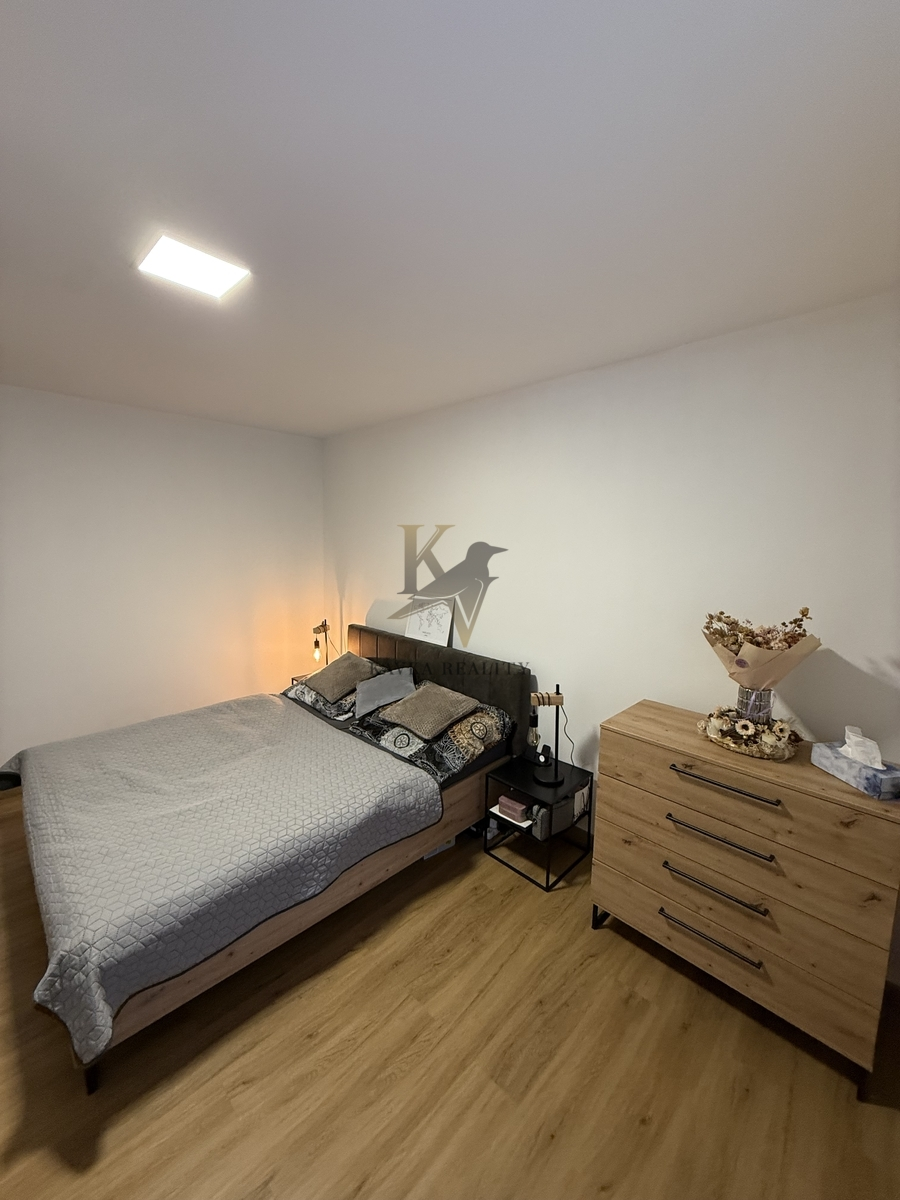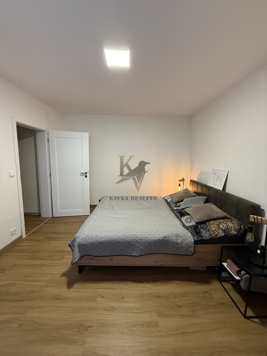 Součástí vybavení je také , postel s rošty , nočními stolky , komodou , sedací souprava s konferenčním stolkem , tv stolkem s úložným prostorem , vestavěná skříň v chodbě a udělaná prostorná šatna , kterou určitě uvítá a ocení každý najemnik.