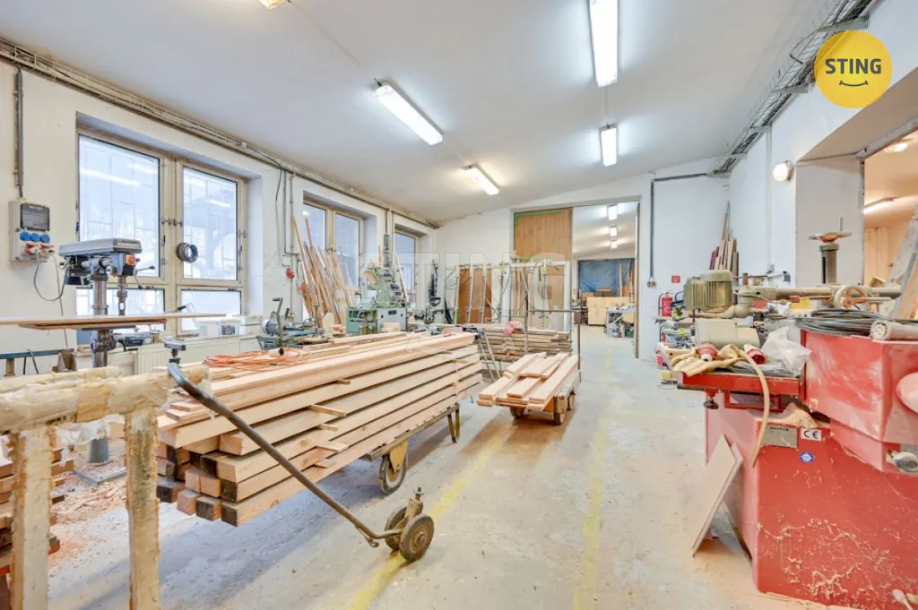 s prostory k lehké výrobě a skladování. Jeho rozloha umožňuje podnikat v různých oblastech ( např: dřevovýroba, kovoobrábění, autoservis nebo jen sklad apod.)