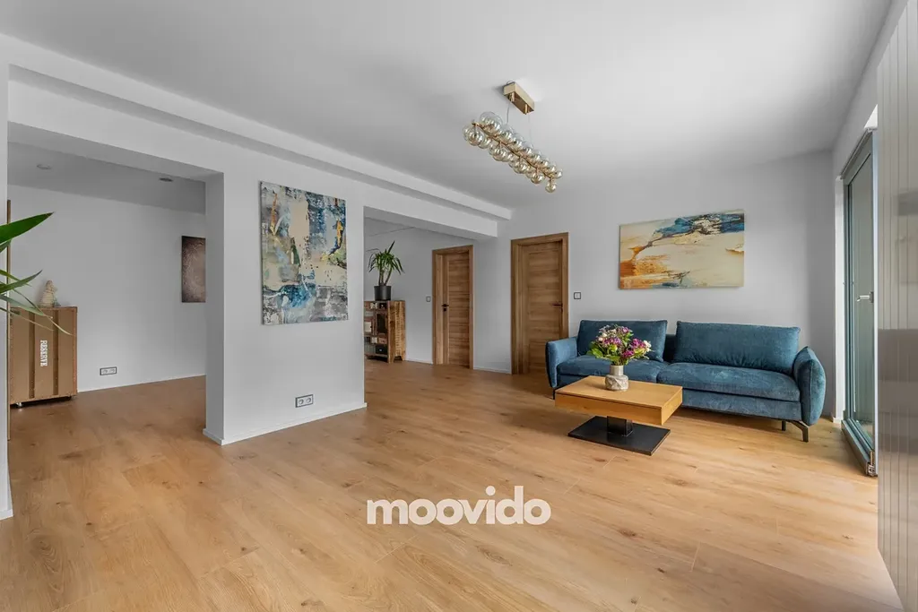 s kuchyňským koutem (15,35 m2), pokojem (17 m2) se vstupem na terasu, na který navazuje pracovna (9,39 m2), dvě ložnice (10,22 a 10,49 m2) - jedna s vlastní koupelnou a infrasaunou (9,35 m2). Dále je zde samostatná koupelna s vanou (5,89 m2) a toaleta (1,48 m2).