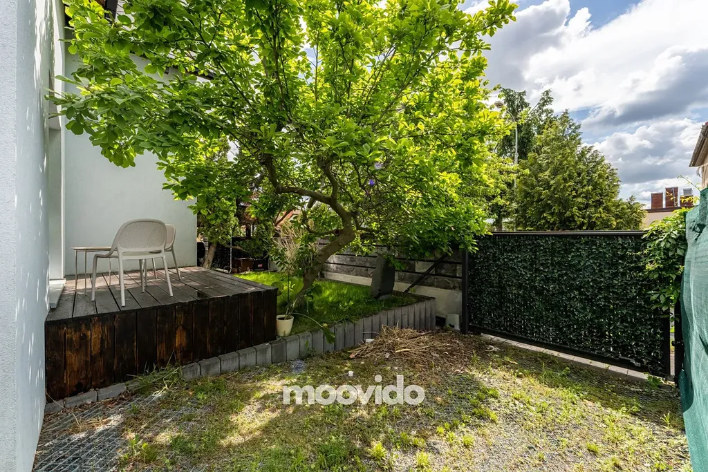 Parkování je na pozemku. Pro dva vozy je zde zastřešené stání s vjezdovou bránou na dálkové ovládání, třetí stání je nezastřešené. Zahrada má automatický zavlažovací systém s možností napojení na vlastní studnu.
