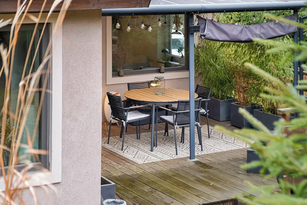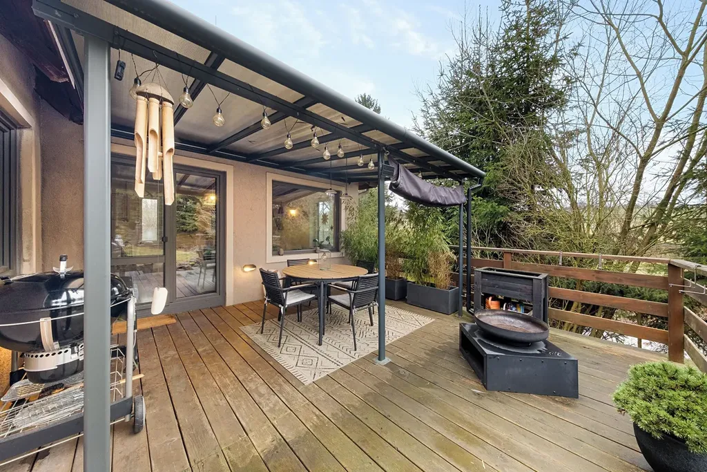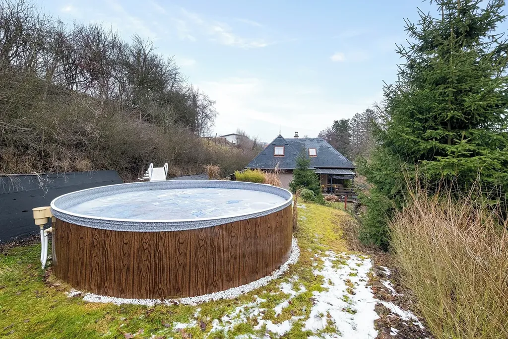 Na obytnou část domu plynule navazuje terasa, která je nově zastřešena hliníkovou konstrukcí a vytváří příjemné místo pro posezení. Dům je zasazen do jižně orientované zahrady, která je částečně okrasná, poskytuje dostatek soukromí a není jednotvárná. Zahrada poskytuje prostor pro nadzemní bazén, relaxační zónu i další využití podle vašich představ. V přední části pozemku u vjezdu je navíc místo, kde lze dobudovat přístřešek pro auto.