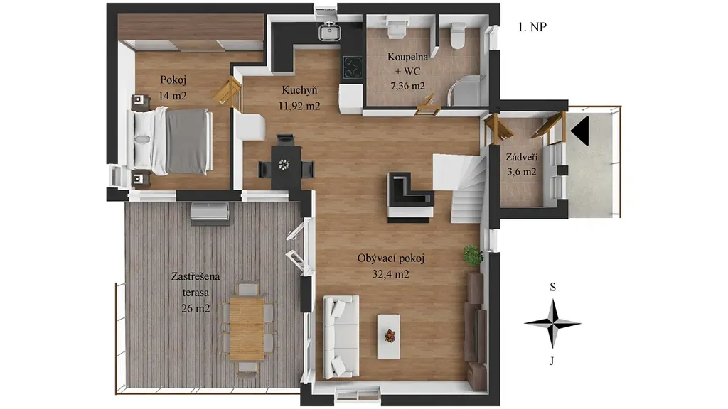 • všechny obytné prostory dostatečně prosklené a orientované na jih