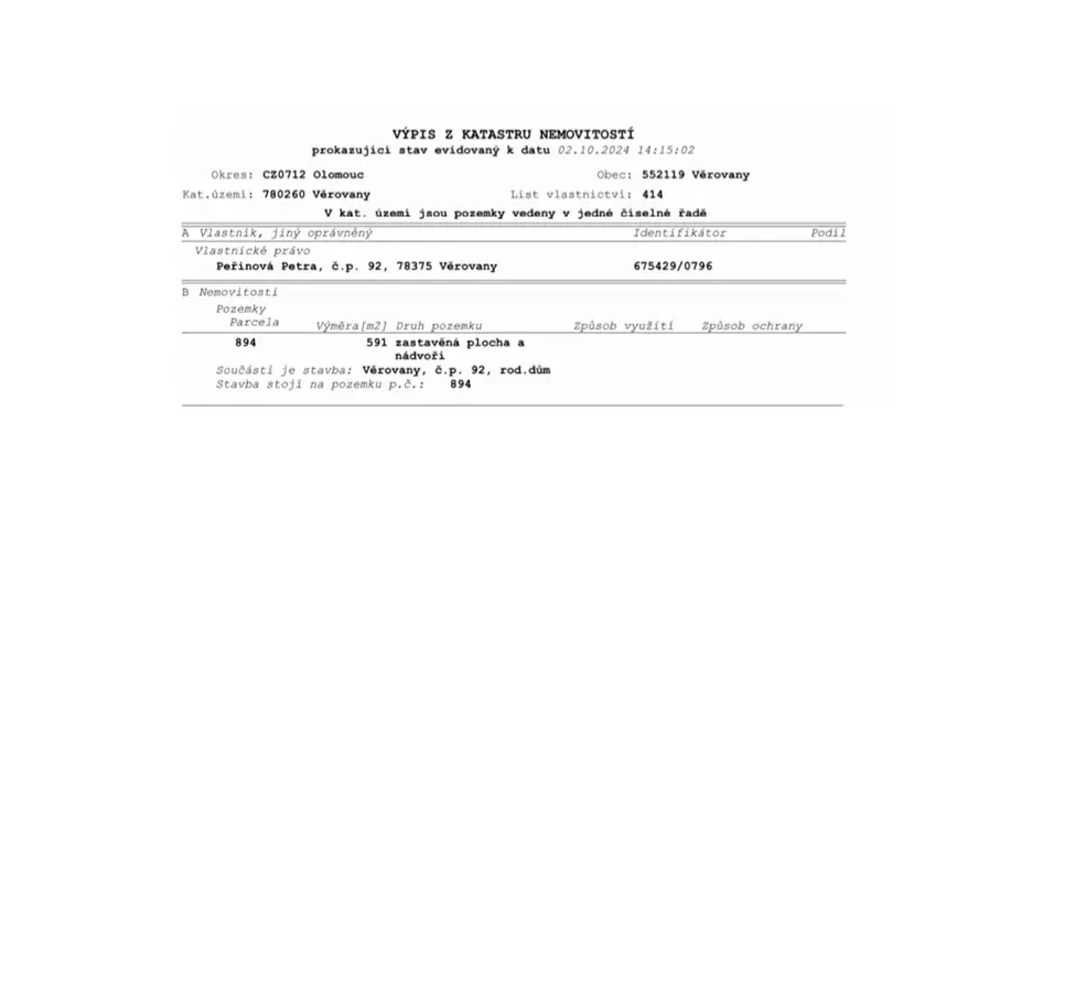 Nezastavěná část stavebního pozemku tvoří zahrada, na které se nachází vedlejší stavby (garáž, kůlna).
