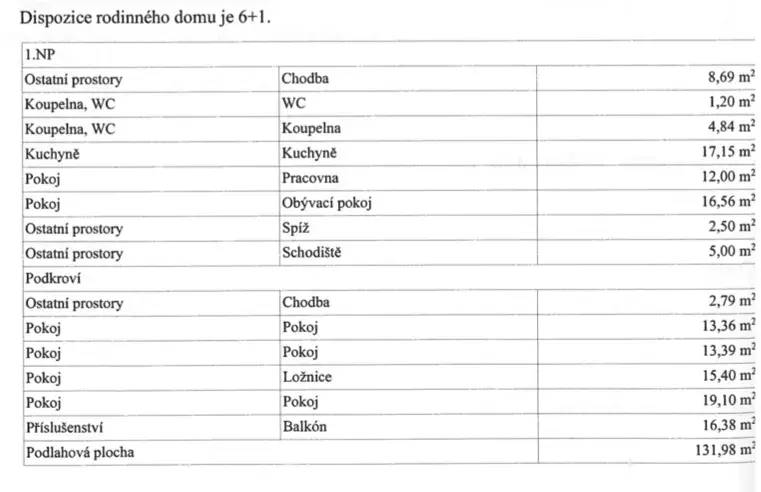 Celková výměra pozemku 591m2. Užitná plocha domu 132m2.