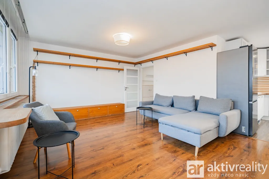 Obývací pokoj je propojen s kuchyní a tvoří příjemný centrální prostor bytu. Z této místnosti je vstup na lodžii.