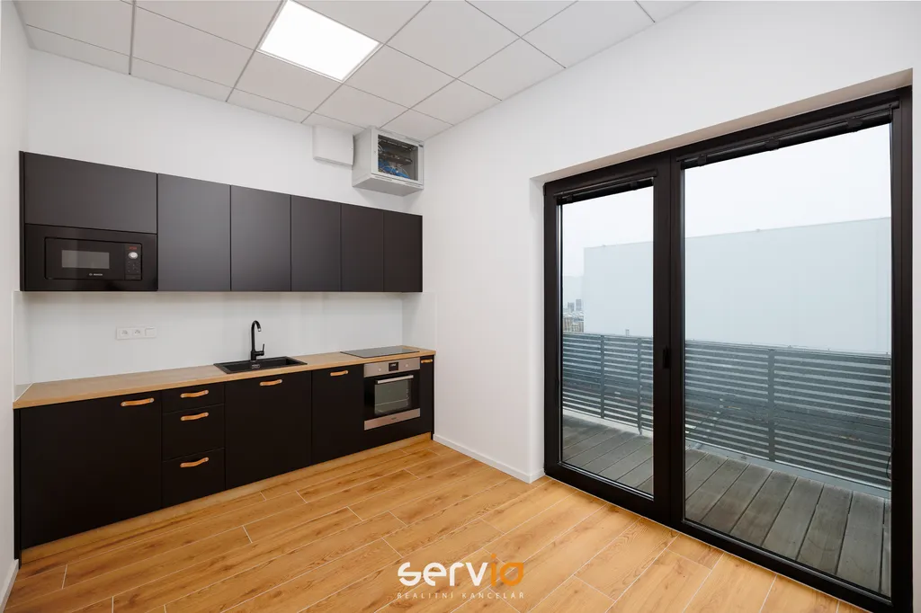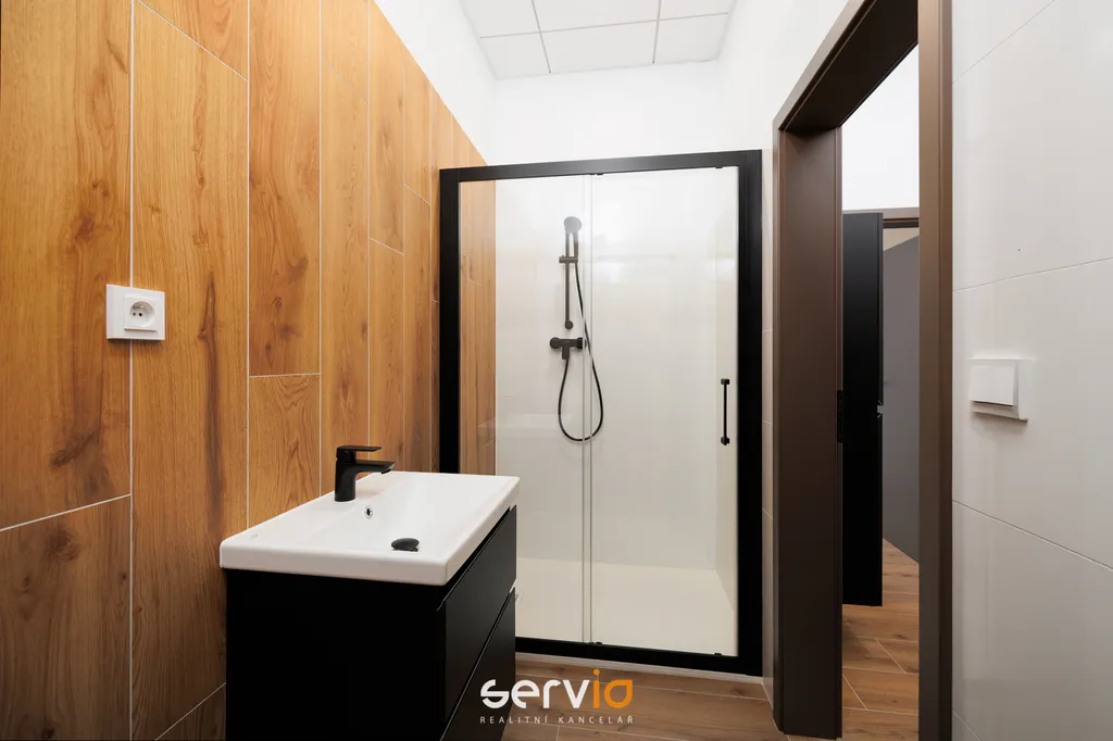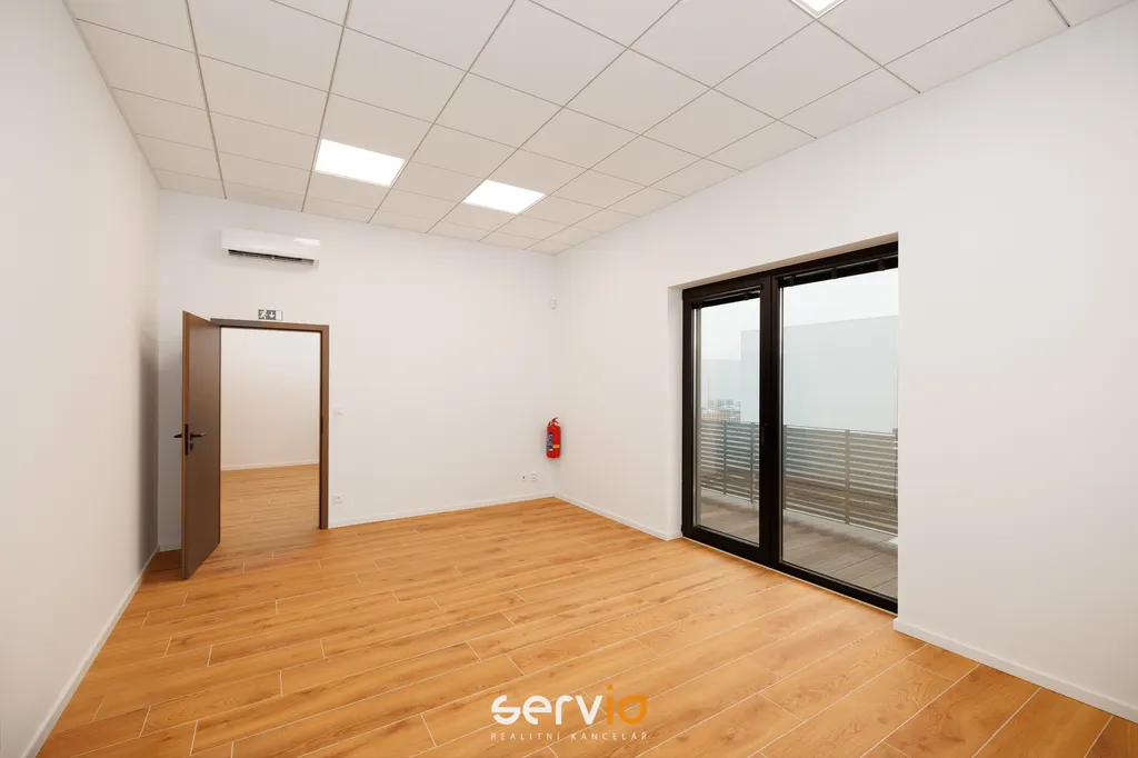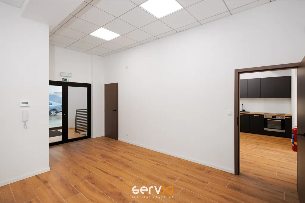 Prostory se nacházejí v 1.NP/3.NP a skládají se ze 2 neprůchozích klimatizovaných místností, recepce, samostaté plně vybavené kuchyně spotřebiči Whirlpool, sprchy, 2x WC a balkonu (18,4 m2) se třemi samostatnými vstupy.
