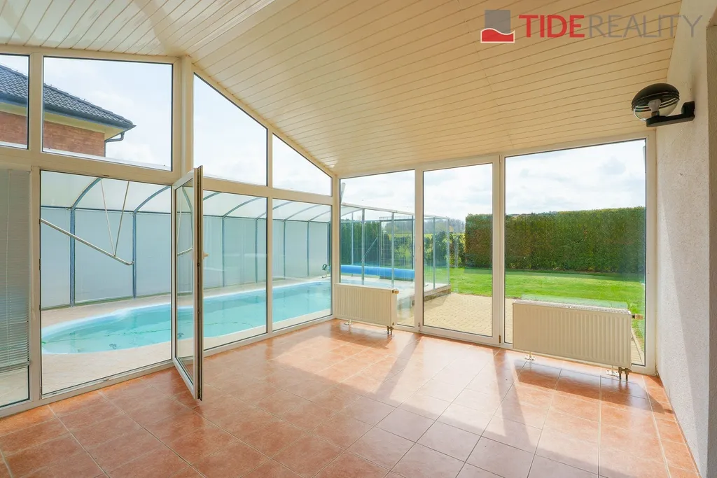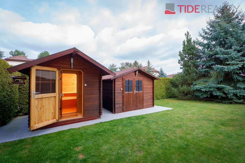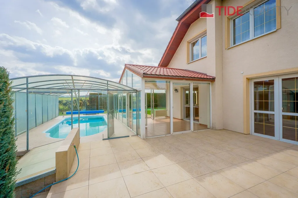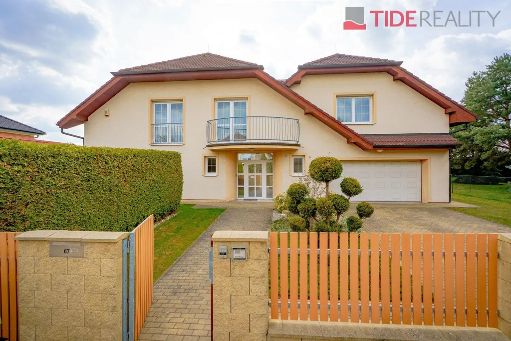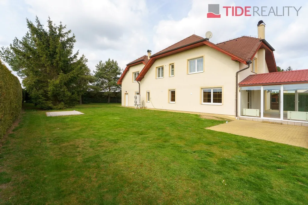 Nabízíme k pronájmu velmi prostorný dům i pro velkou rodinu o celkové užitné ploše 290 m2 s pečlivě udržovanou zahradou o velikosti 560 m2. Ve dvou nadzemních podlažích se rozkládá 5 ložnic, obývací pokoj s krbem propojený s velkou zimní zahradou i krytým vytápěným bazénem s protiproudem, plně vybavená kuchyň, celkem 3 koupelny (jedna ensuite), a samostatná prádelna. Dům je zařízený vestavěnými skříněmi a dostatečným množstvím dalších úložných prostor. Dům je vytápěný prostřednictvím podlahového topení napojeného na hospodárné tepelné čerpadlo, které snižuje celkové energetické náklady. Na pozemku se nachází sauna s potřebným zázemím. Zahrada je vybavena automatickou závlahu. Garáž pro 2 auta, další parkování možné na pozemku před domem. Dům se nachází v klidné vilové čtvrti jen pár kroků do přírody, v nedaleké vzdálenosti i od Průhonického parku. PENB třída C.