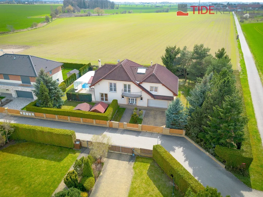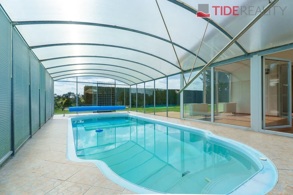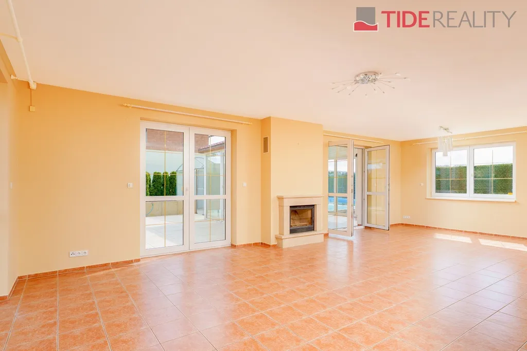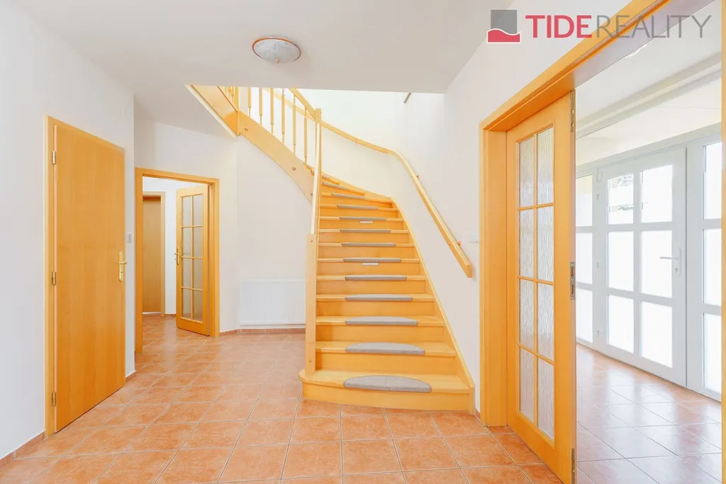 Nabízíme k pronájmu velmi prostorný dům i pro velkou rodinu o celkové užitné ploše 290 m2 s pečlivě udržovanou zahradou o velikosti 560 m2. Ve dvou nadzemních podlažích se rozkládá 5 ložnic, obývací pokoj s krbem propojený s velkou zimní zahradou i krytým vytápěným bazénem s protiproudem, plně vybavená kuchyň, celkem 3 koupelny (jedna ensuite), a samostatná prádelna. Dům je zařízený vestavěnými skříněmi a dostatečným množstvím dalších úložných prostor. Dům je vytápěný prostřednictvím podlahového topení napojeného na hospodárné tepelné čerpadlo, které snižuje celkové energetické náklady. Na pozemku se nachází sauna s potřebným zázemím. Zahrada je vybavena automatickou závlahu. Garáž pro 2 auta, další parkování možné na pozemku před domem. Dům se nachází v klidné vilové čtvrti jen pár kroků do přírody, v nedaleké vzdálenosti i od Průhonického parku. PENB třída C.