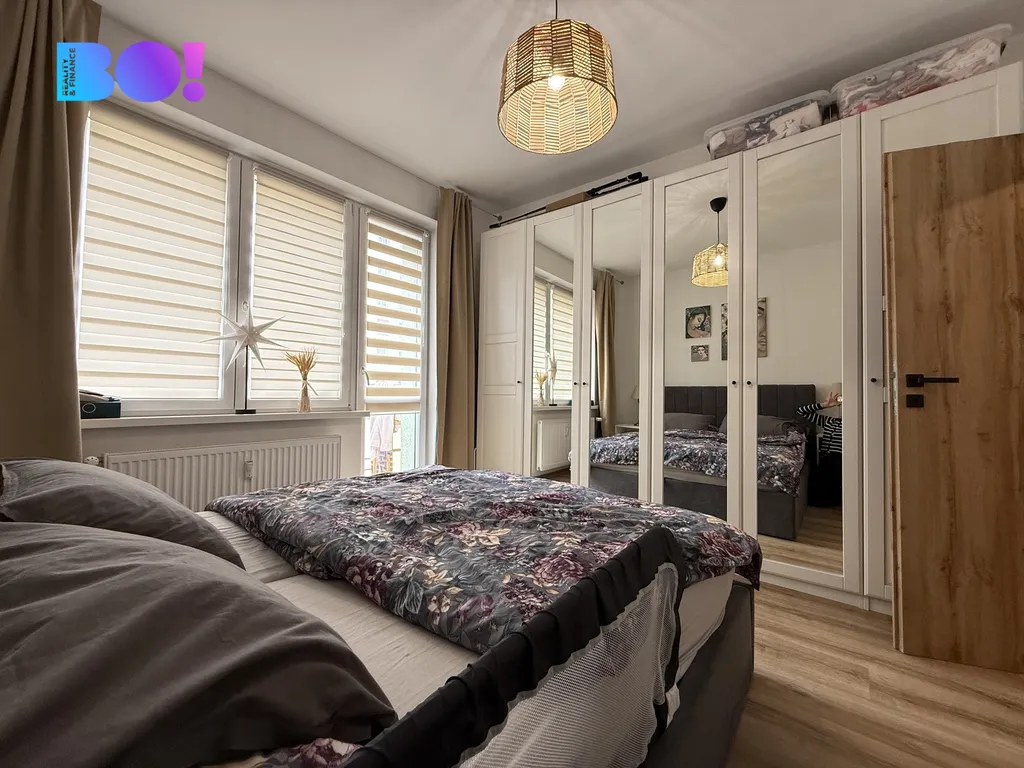 V bytě se prolínají barevně sladěné interiérové prvky zařízení. Čistý bílý design doplňují barevné tóny dřeva a jemně zelený - mátový odstín v kuchyni. Podlahy byly vyrovnány, izolovány a na povrchu je vysoce zátěžové linoleum evokující dřevěnou podlahu. Pocitově se jeví jako vinylová podlaha a pro domácnost s dětmi ideální. Okenní zastínění zajišťují rolety den a noc.