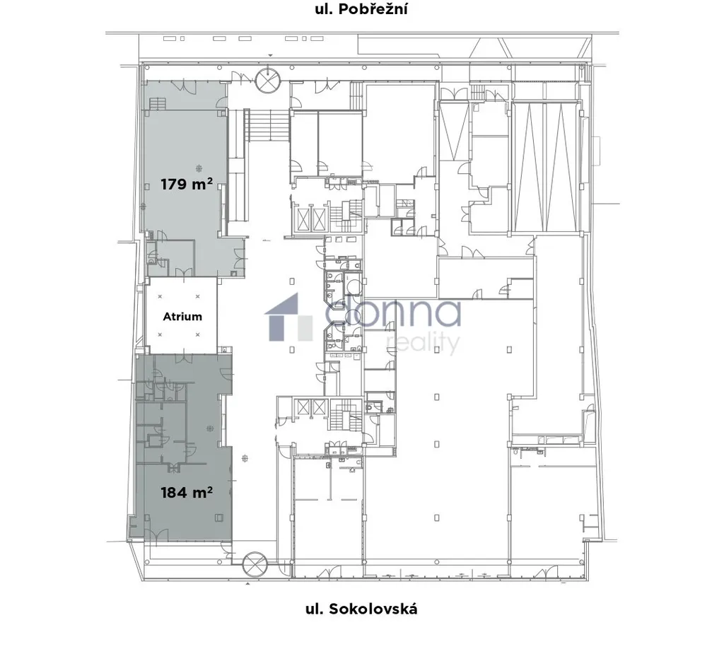 Nabízíme k pronájmu retailovou jednotku v 1. NP o celkové rozloze 184 m² v administrativní budově v ulici Sokolovská v městské části Prahy 8 – Karlín. Prostor o velikosti 184 m² orientován do ulice Sokolovská, lze propojit atriem s vedlejší jednotkou 179 m2 orientovanou do ulice Pobřežní. Obrovskou výhodou lokality pražského Karlína je výborná dostupnost všemi typy dopravy – autem, MHD, nebo dokonce na kole díky napojení Karlína na síť pražských cyklostezek. V těsné blízkosti objektu se nachází stanice metra B Křižíkova a stejnojmenná tramvajová zastávka. K autobusovému nádraží a stanici metra Florenc je možné dojít pěšky za 12 minut. Parkování:140 EUR/měsíc. Prostory jsou dostupné k pronájmu od 1.4.2026. Neplatíte provizi.