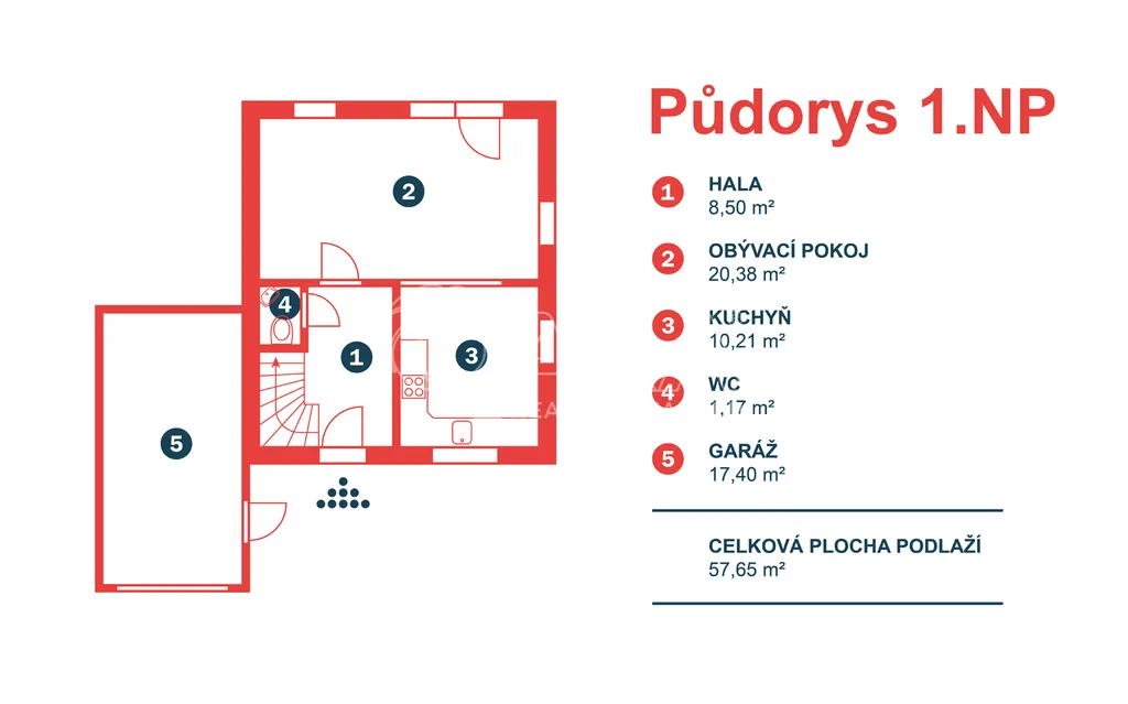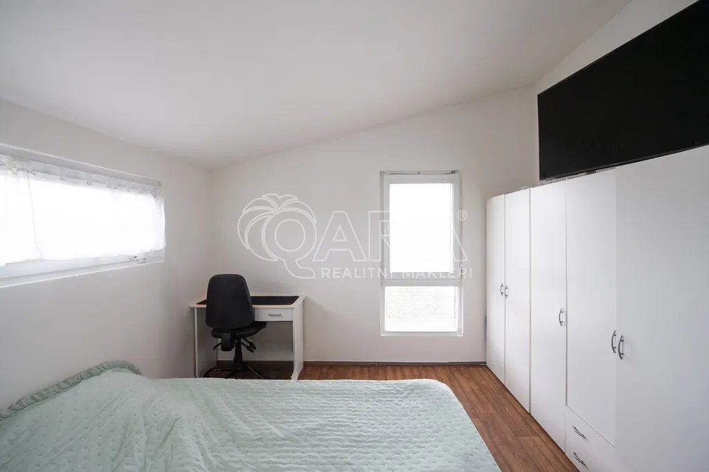 Dům o dvou podlaží je dispozičně řešen jako 4+kk, přičemž v přízemí je společenská část: obývací pokoj s kuchyňským koutem, předsíň, samostatné WC s umyvadlem a také garáž. V patře jsou tři samostané ložnice a koupelna s WC.