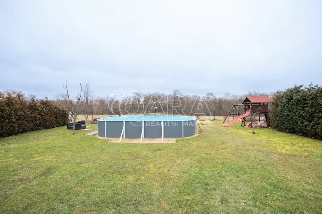 Velkou výhodou je měsíční režie domu- jen 3500,- Kč a to defacto jen za elektřinu. Voda je zajištěna z vlastního vrtu (hloubka 70m), dále je k dispozici ještě kopaná studna, která slouží k zalévaní zahrady, stejný účel splňuje čistička odpadních vod + retenční nádrž.